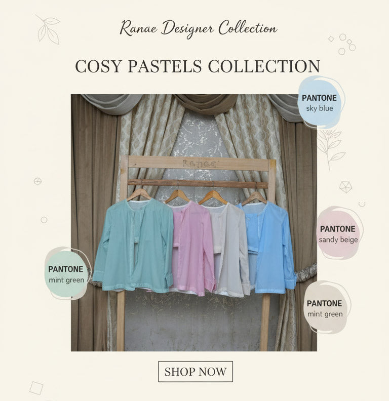 The ensemble includes a camisole and nicker, detailed with white piping and fine stitching for a refined finish. Available in four Pantone-inspired colors, this comfy wear collection ensures you feel stylish, breathable, and relaxed at any time of the day.